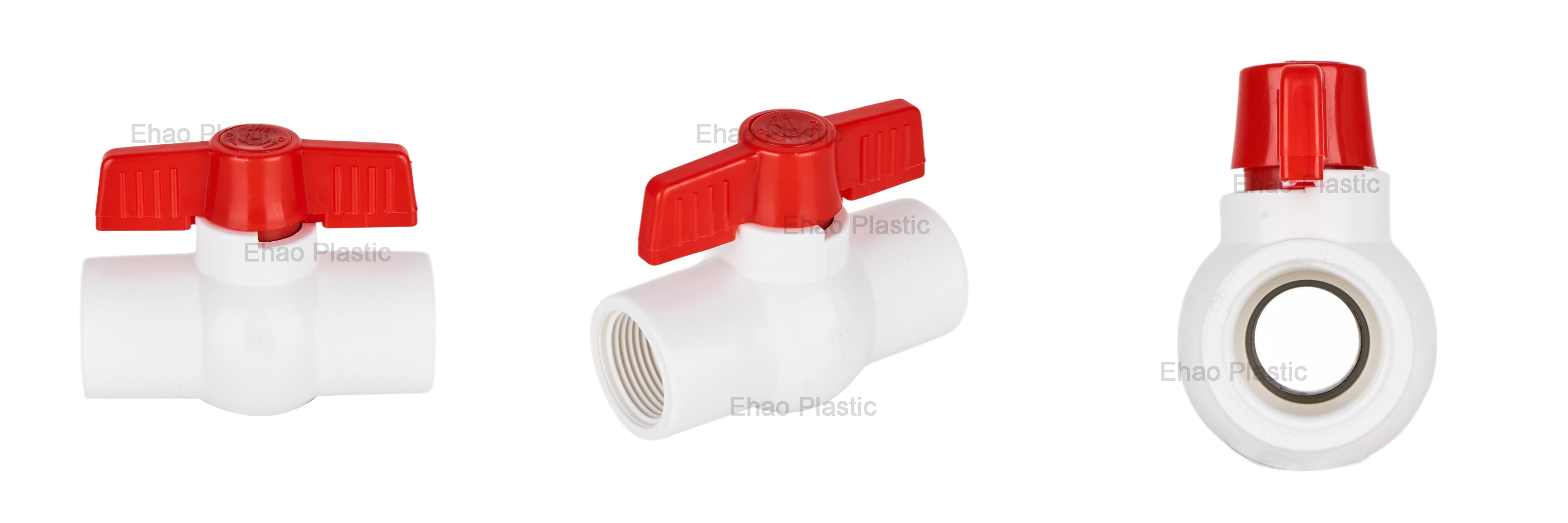 1/2” PVC Round Compact Ball Valve Thread Ends Factory